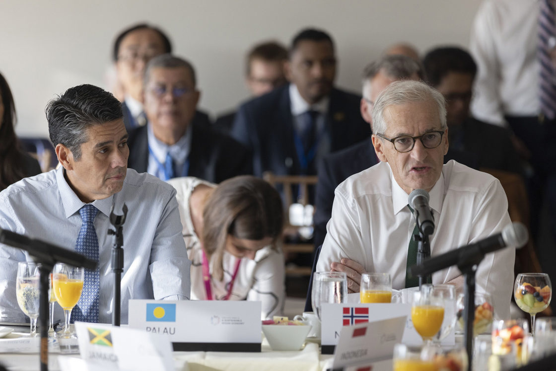 Statsminister Jonas Gahr Støre ledet møtet sammen med Palaus president Surangel Whipps Jr. Den nye rapporten viser at løsninger som allerede er klare til å innføres kan bidra til løse 35 prosent av kuttene som er nødvendige for å begrense den globale oppvarmingen innen 2050. Det tilsvarer fire ganger de årlige utslippene til EU-landene.