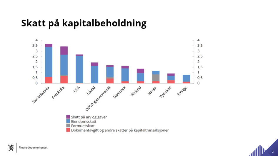 Det skyldes at vi ikke skattlegger arv, og at bolig og eiendom beskattes relativt lavt.