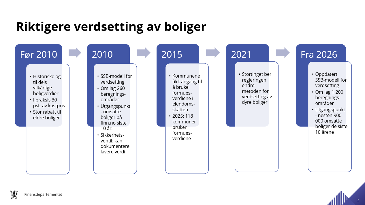 I statsbudsjettet i høst fulgte regjeringen opp vedtaket fra Stortinget, og innførte en oppdatert modell for hvordan boliger skal verdsettes.