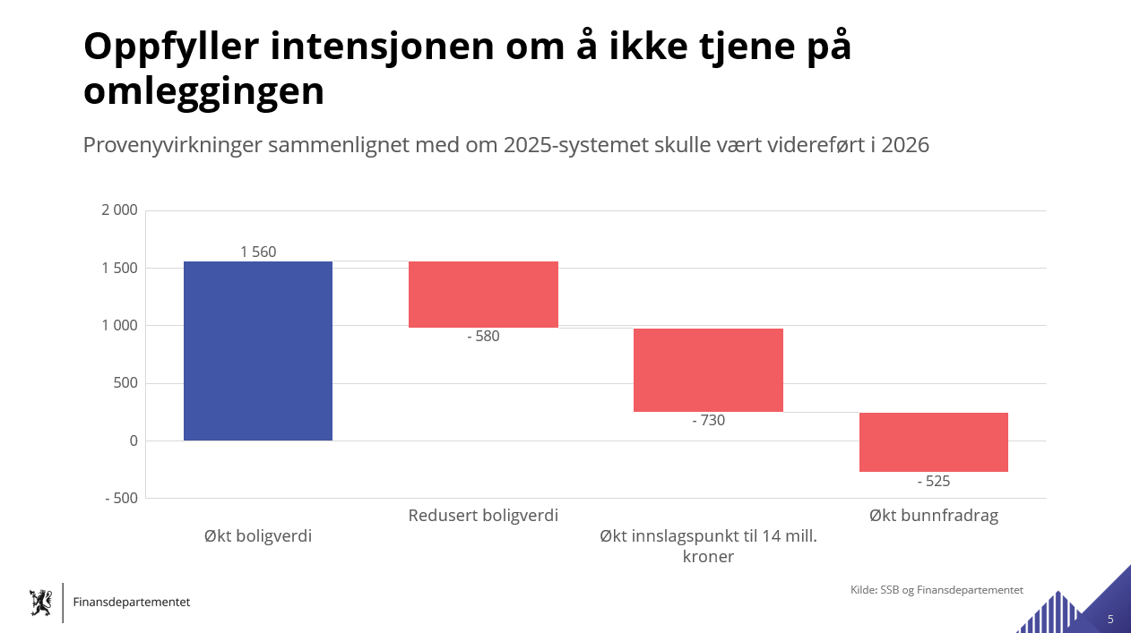 Derfor var det et viktig premiss i budsjettet for 2026 at staten ikke skulle tjene penger på omleggingen fra gammel til oppdatert boligmodell.