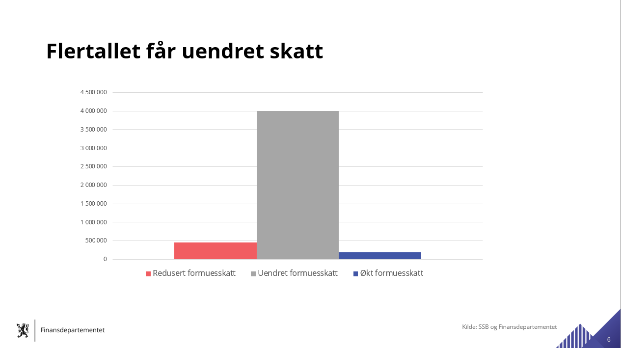 I Norge er det rundt 4,7 millioner skattytere. 85 prosent av disse betaler ikke formuesskatt.