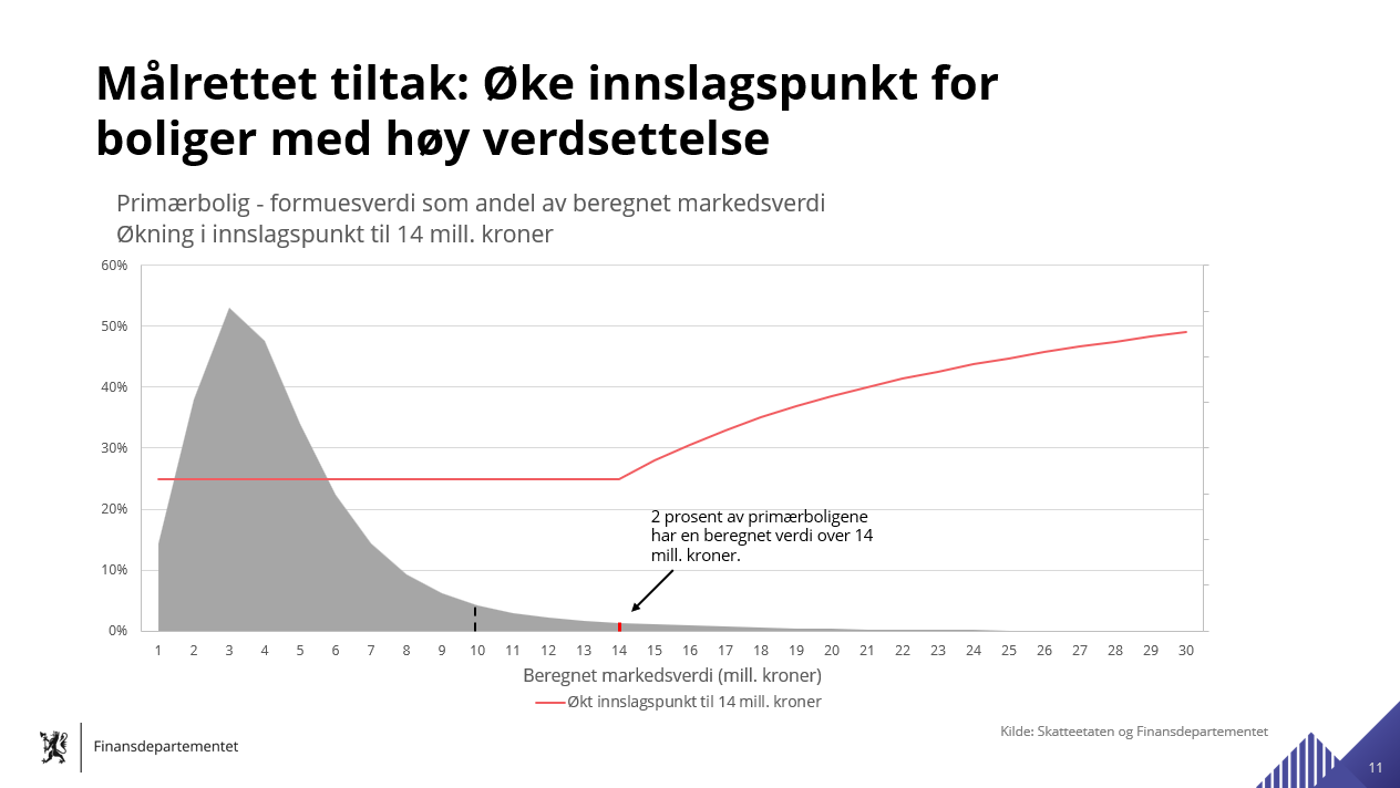 Det er bare den delen av boligverdien som er over 14 millioner kroner, som teller 70 prosent.