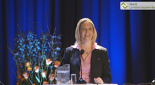 Landbruks- og matminister Sylvi Listhaug under dagens konferanse. (Foto: Norsk Landbrukssamvirke, Web-kamera)