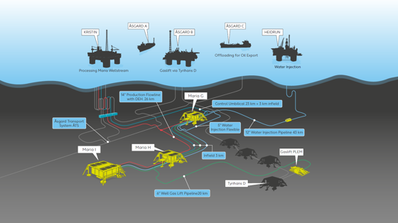 Maria Fase 2 vil øke feltets reserver med 22 millioner fat oljeekvivalenter. Investeringene beløper seg samlet til om lag 4 milliarder kroner.