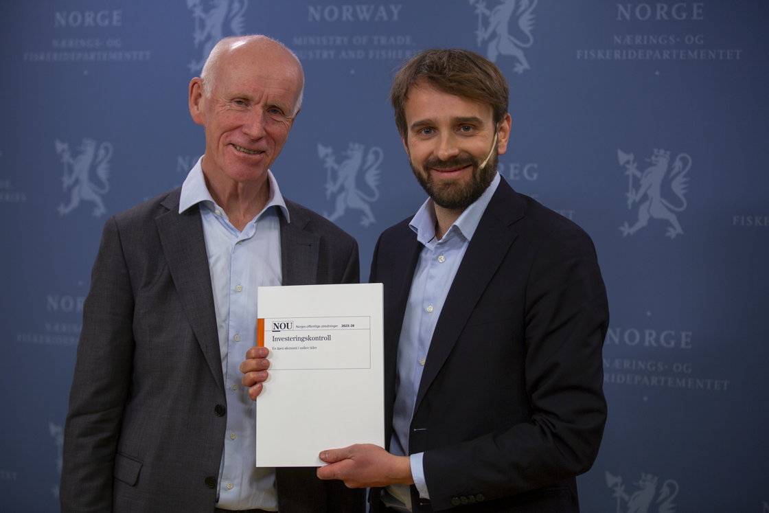 Næringsministeren mottok NOU 2023: 28 Investeringskontroll – En åpen økonomi i en usikker tid fra utvalgsleder Per Sanderud. Det regjeringsoppnevnte utvalget foreslår blant annet at det bør lages en ny lov om investeringskontroll.
