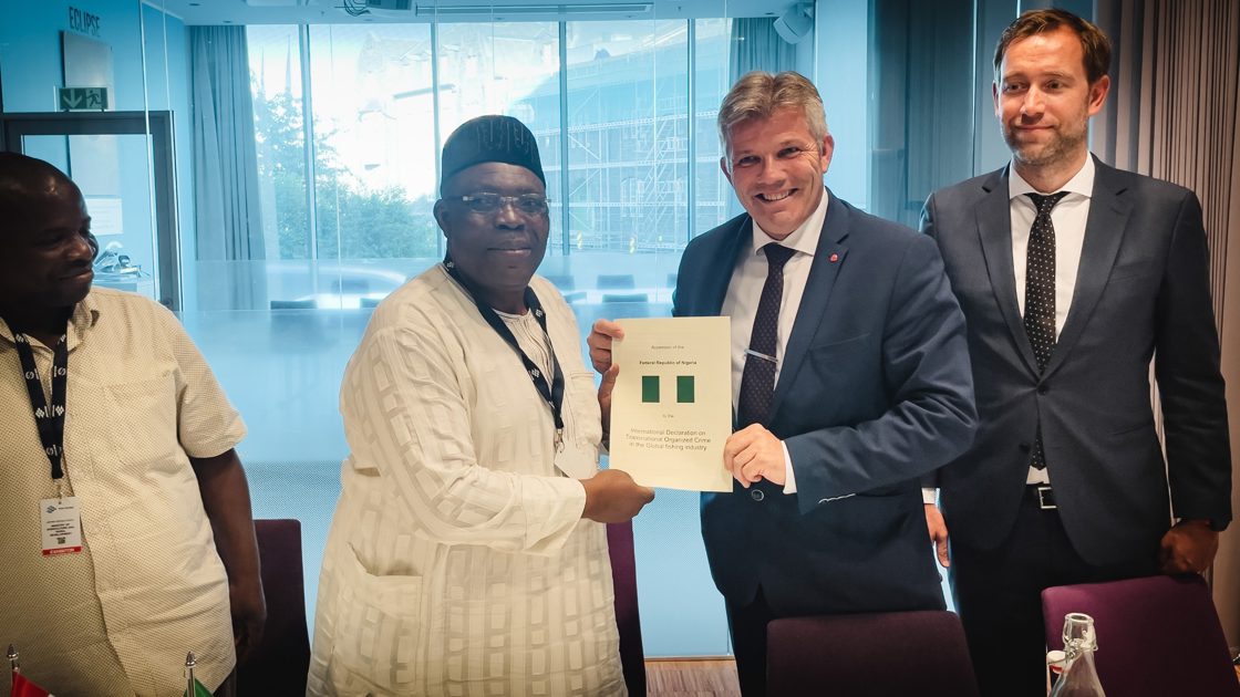 I 2018 vedtok Norge og åtte andre land en politisk erklæring om grensekryssende organisert kriminalitet i den globale fiskeindustrien. Med den nigerianske tiltredelsen har erklæringen støtte fra 50 kystnasjoner.