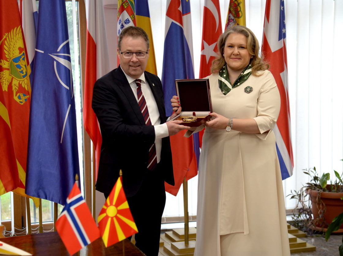 Under et møte i Nord-Makedonia med deres forsvarsminister Slavjanka Petrovska, overleverte Gram nyheten om donasjonen fra Norge.