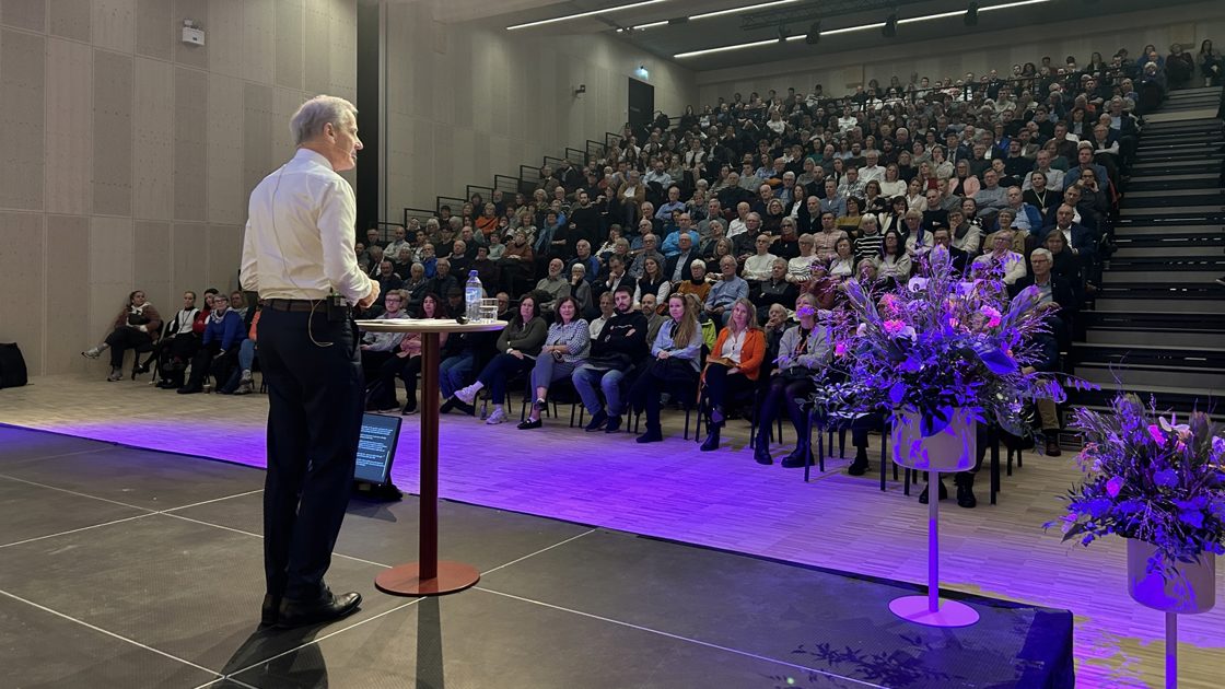 Jeg skal gå rett på sak. Jeg skal snakke om tre store oppgaver vi står overfor – som fellesskap. Og så håper jeg å få noen spørsmål tilbake fra dere. Da jeg var på Stortinget, så var jeg litt i tvil om jeg kunne si dette, men det er spørsmålene jeg får på sånne samlinger som dette – de kommer jo rett fra ‘levd liv’ her – og det er det jeg satser på nå også.
