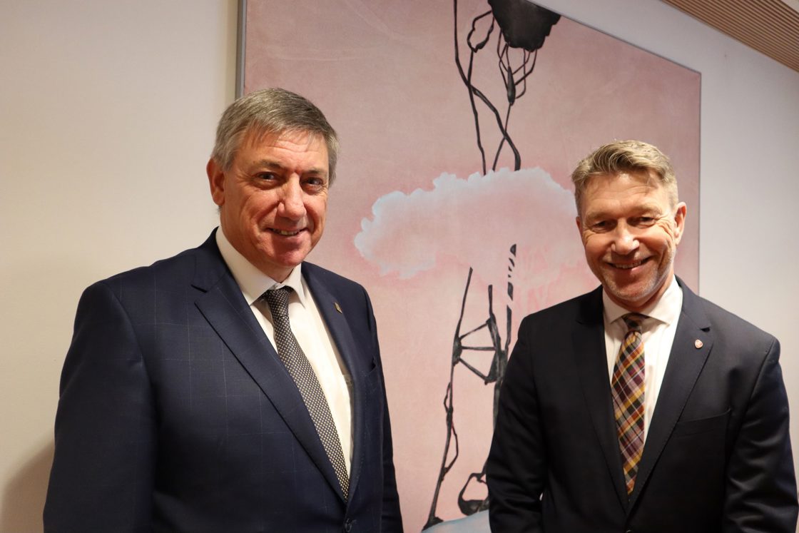 F.v den flamske ministerpresidenten Jan Jambon og statsråd Terje Aasland.