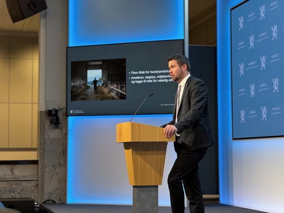 – Norge har alle forutsetninger for å være ledende på dyrevelferd, sier landbruks- og matminister Geir Pollestad (Sp) som legger frem stortingsmeldingen sammen med fiskeri- og havminister Marianne Sivertsen Næss (Ap).