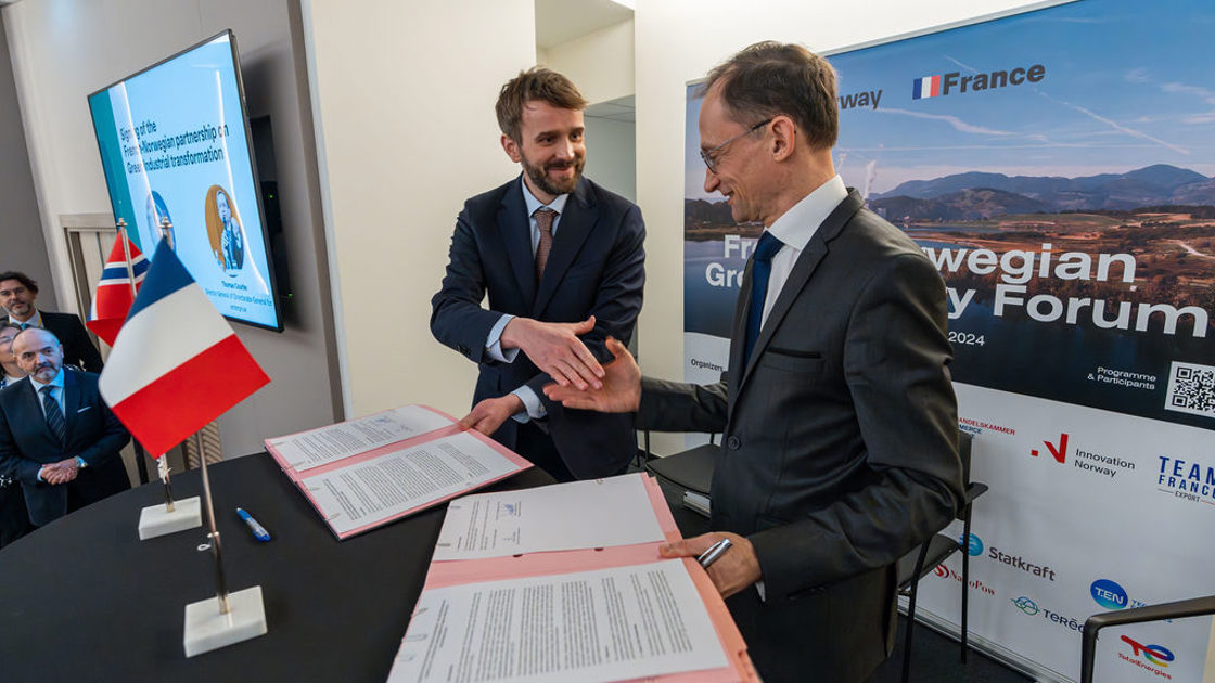 Tirsdag 16. januar signerte næringsminister Jan Christian Vestre et grønt strategisk industripartnerskap med Frankrike.