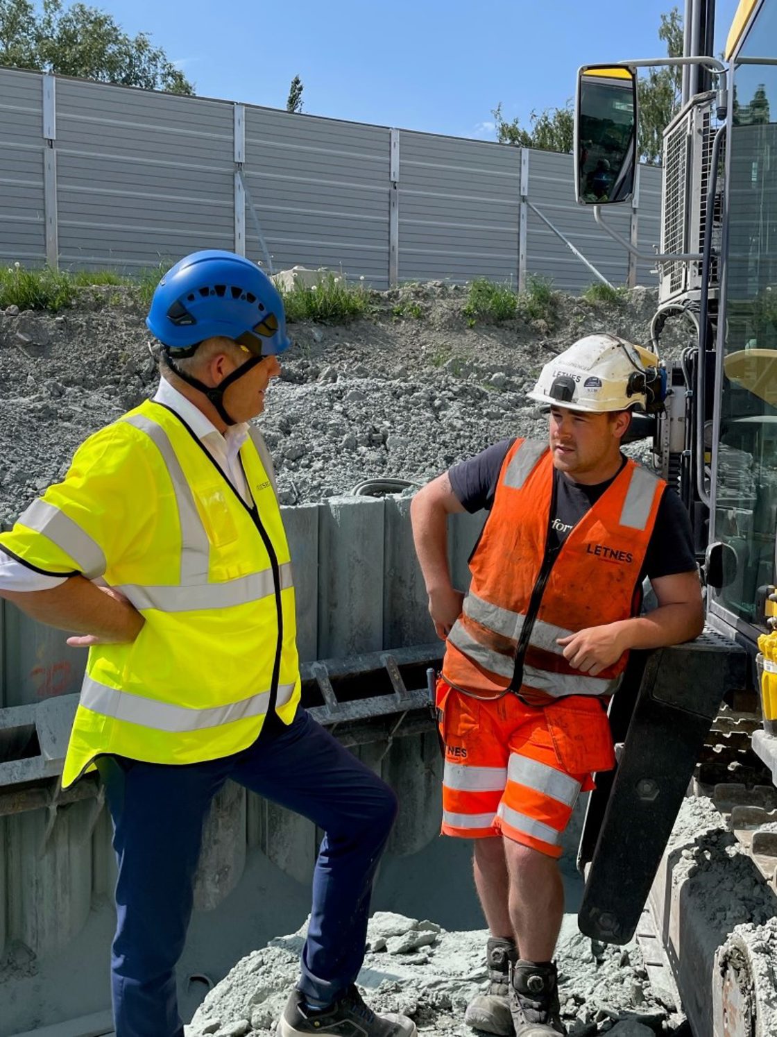 - Jeg følger prosjektet tett og får rapporter hver måned, men det er noe annet å være på tomta og møte de som faktisk gjør jobben. Grunnarbeidene er godt i gang og prosjektet går på skinner, sier fiskeri- og havminister Bjørnar Skjæran (Ap).