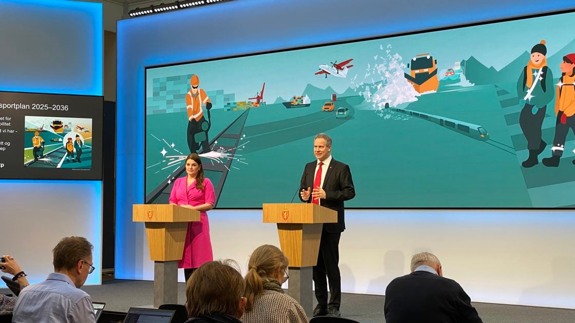 Samferdselsminister Jon-Ivar Nygård og fiskeri- og havminister Cecilie Myrseth presenterte 22. mars Nasjonal transportplan 2025-2036 (Foto: SD).