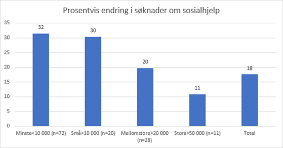 De nye tallene fra NAV sier at det er store forskjeller i hvordan økningen i søknader om sosialhjelp er fordelt mellom kommunene. De minste kommunene oppgir at antall søknader har økt med 30 prosent i snitt. I de store bykommunene som Oslo, Bergen og Trondheim er den gjennomsnittlig økning på 11 prosent.