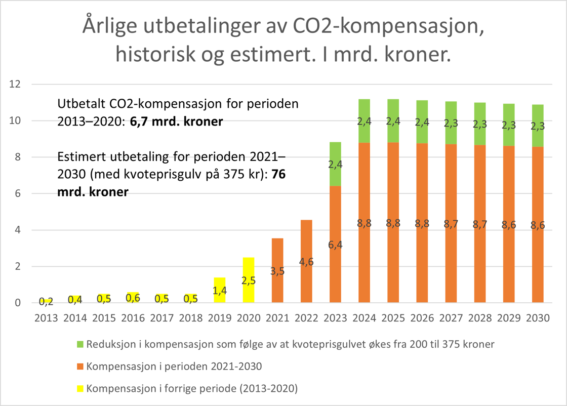 Øker CO2-kompensasjonsordningen med 1,7 milliarder kroner