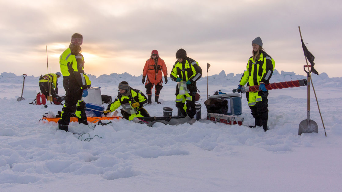 Bilde av forskere som jobber på isen i Arktis