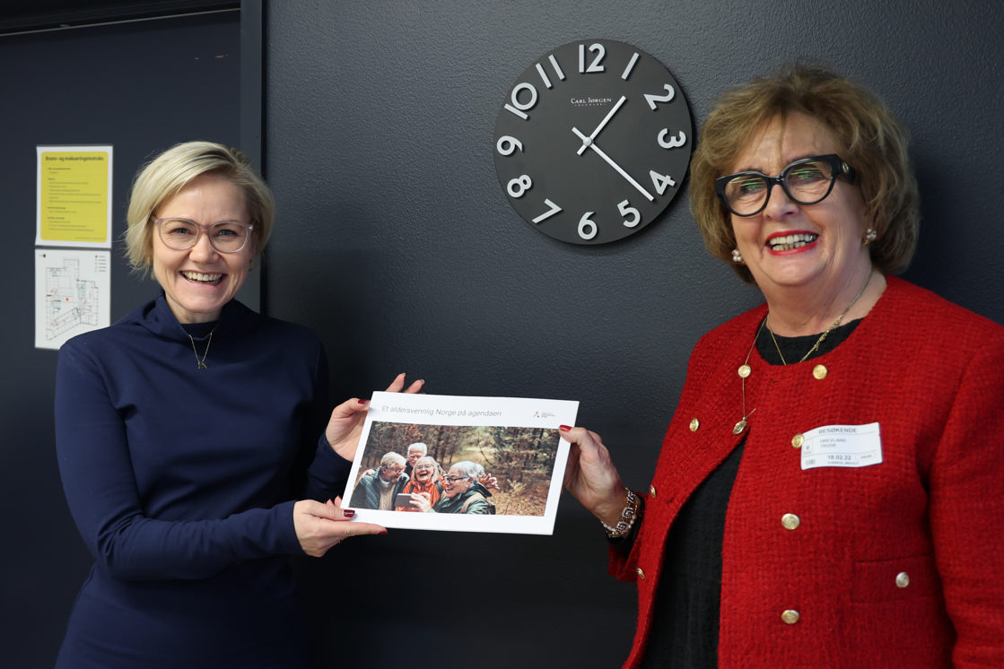 Helse- og omsorgsminister Ingvild Kjerkol mottok fredag 18. februar rapporten «Et aldersvennlig Norge på agendaen» fra Trude Drevland, leder for Rådet for et aldersvennlig Norge.