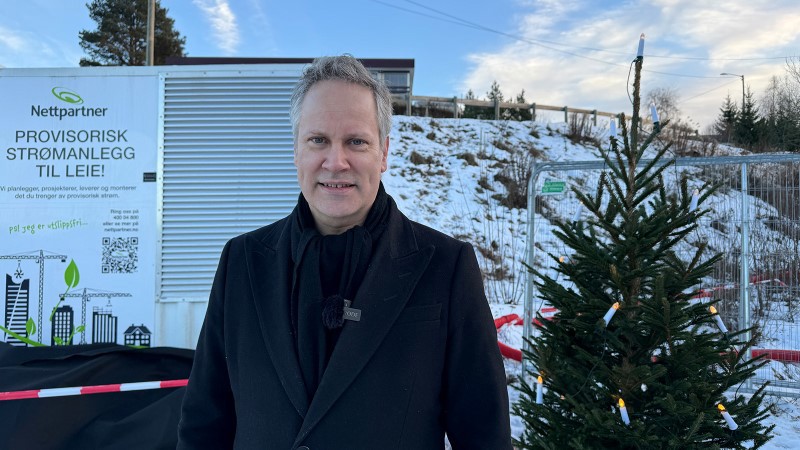 Samferdselsminister Jon-Ivar Nygård avduket i desember en av nettstasjonene som Statens vegvesen bruker i byggingen av ny miljøgate i Gran sentrum. Dette gjøres tilnærmet utslippsfritt. Pilotprosjektet fikk midler i 2023, og fullføres før jul i 2024. (Foto: Frøydis Tornøe, Samferdselsdepartementet)