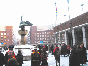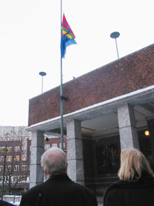Bilder fra flaggheisingen utenfor Oslo Rådhus: