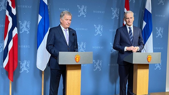 - Kontakten mellom Norge og Finland er svært god og dekker et bredt felt. Det er tett og godt samarbeid på de fleste områder innen politikk, forsvar, næringsliv og kultur. På flere områder kan også norsk og finsk næringsliv levere grønne løsninger i fellesskap, sier statsminister Støre.