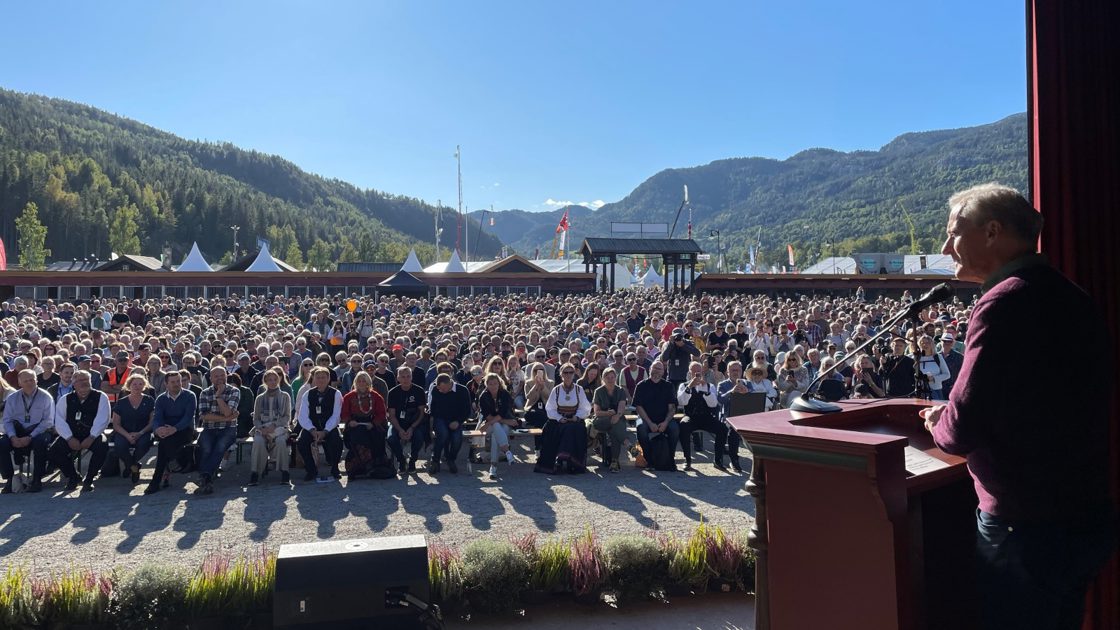 Det er fantastisk å komme hit, det er tredje gang er her og får æren av å åpne, for dette er en stor, nasjonal begivenhet. Og jeg er glad for å være her med Geir (Pollestad), Trygve (Slagsvold Vedum) og Anne Beathe (Tvinnereim).