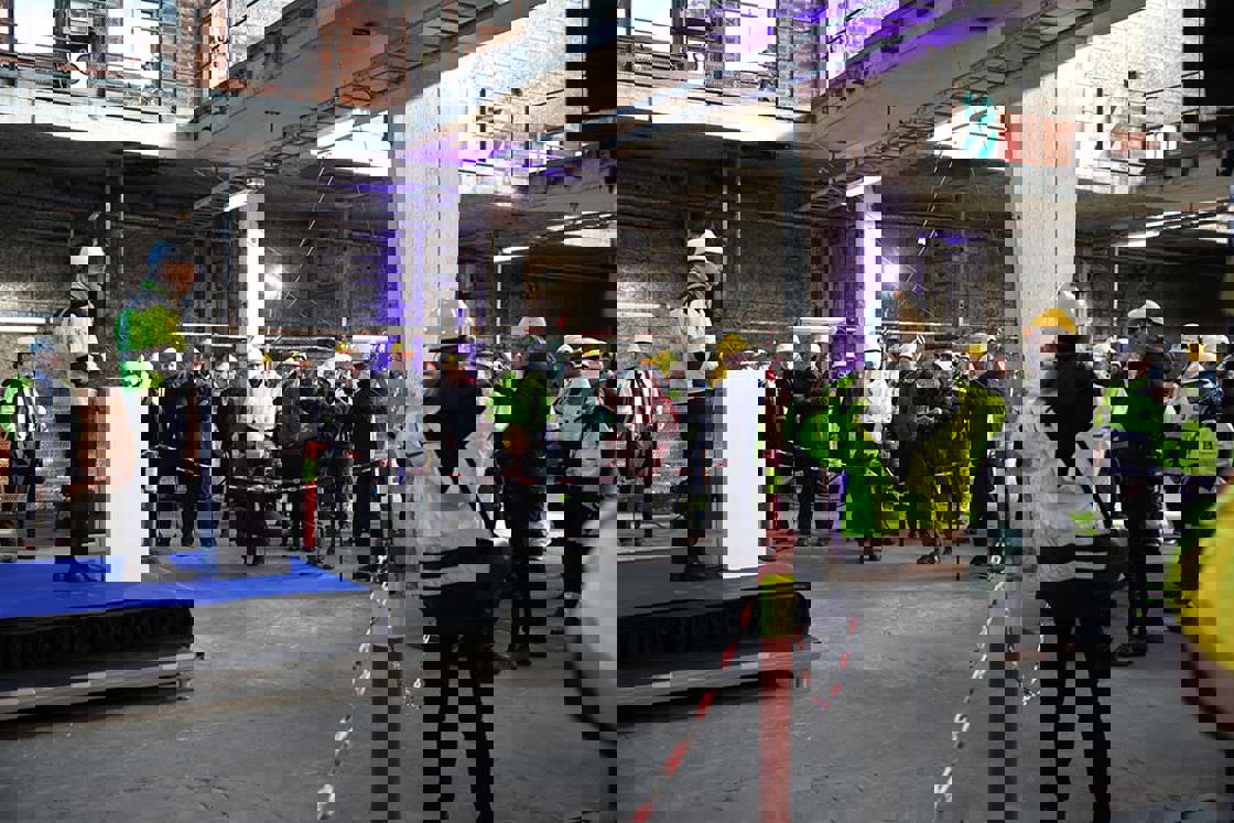 Derfor vil jeg, før jeg får tatt dette spadetaket, mest av alt berømme dere som jobber her. Her er det viktige naturressurser, vi har en stor utfordring på kraft, her produseres det ammoniakk og gjødsel. Men det skjer ikke av seg selv. Det skjer på grunn av veldig dyktige folk. Så alle dere som jobber her, i den lange verdilinjen; takk til dere. Jeg berømmer lærlingene som jeg har møtt, de unge menneskene som er med på dette skiftet og skaper den nye industrien. Og det er de vi må hegne om, det er kunnskapen og kompetansen.