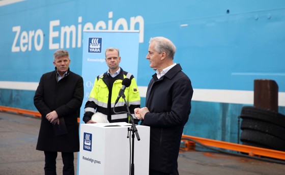 Statsminister Jonas Gahr Støres tale under lanseringen av det elektriske, selvkjørende containerskipet Yara Birkeland i Oslo.