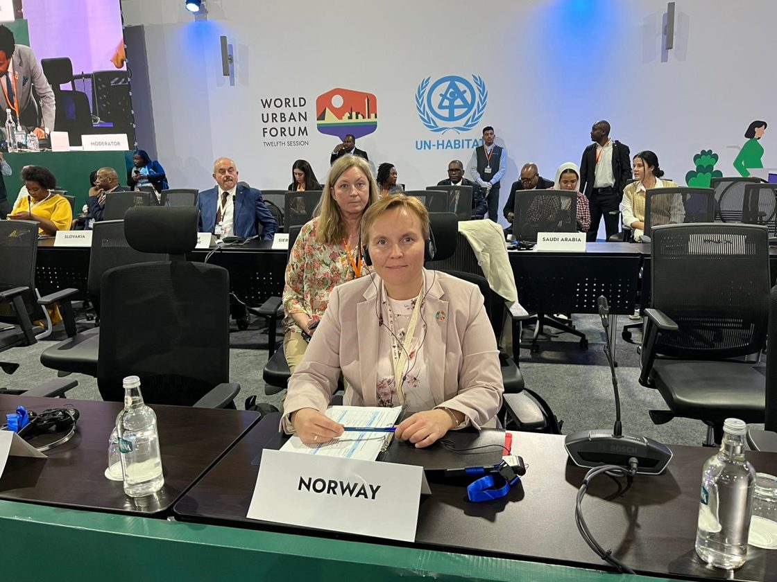 Denne uken deltar statssekretær Nancy Porsanger Anti og statssekretær Sigrun Wiggen Prestbakmo i Kommunal- og distriktsdepartementet på World Urban Forum i Kairo. Sammen med politikere, frivillige organisasjoner og eksperter fra hele verden skal de diskutere hvordan vi kan skape bærekraftige, trygge og inkluderende byer og lokalsamfunn for fremtiden.