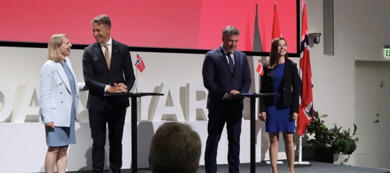 Olje- og energiminister Terje Aasland og Danmarks klima-, energi- og forsyningsminister Lars Aagaard signerte i dag en MoU som styrker det dansk-norske energisamarbeidet om karbonfangst, -utnyttelse og -lagring (CCUS), havvind og hydrogen.
