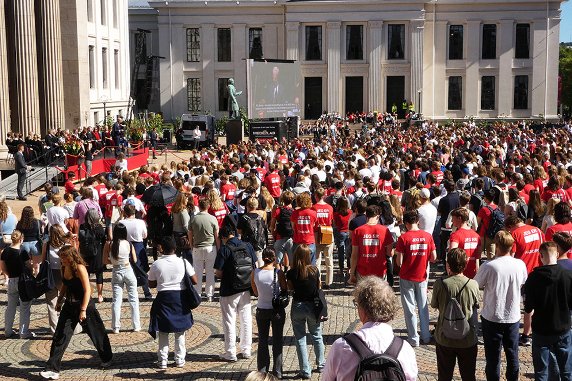 Det er fantastisk å se en stappfull universitetsplass – og enda så er dere bare en del av alle studentene ved universitetet. Tenk dere, gode venner, i 1813, da universitetet her åpnet som Norges første, så var det med 18 studenter og fem professorer. I dag har det godt over 26 000 studenter og 7 200 ansatte.