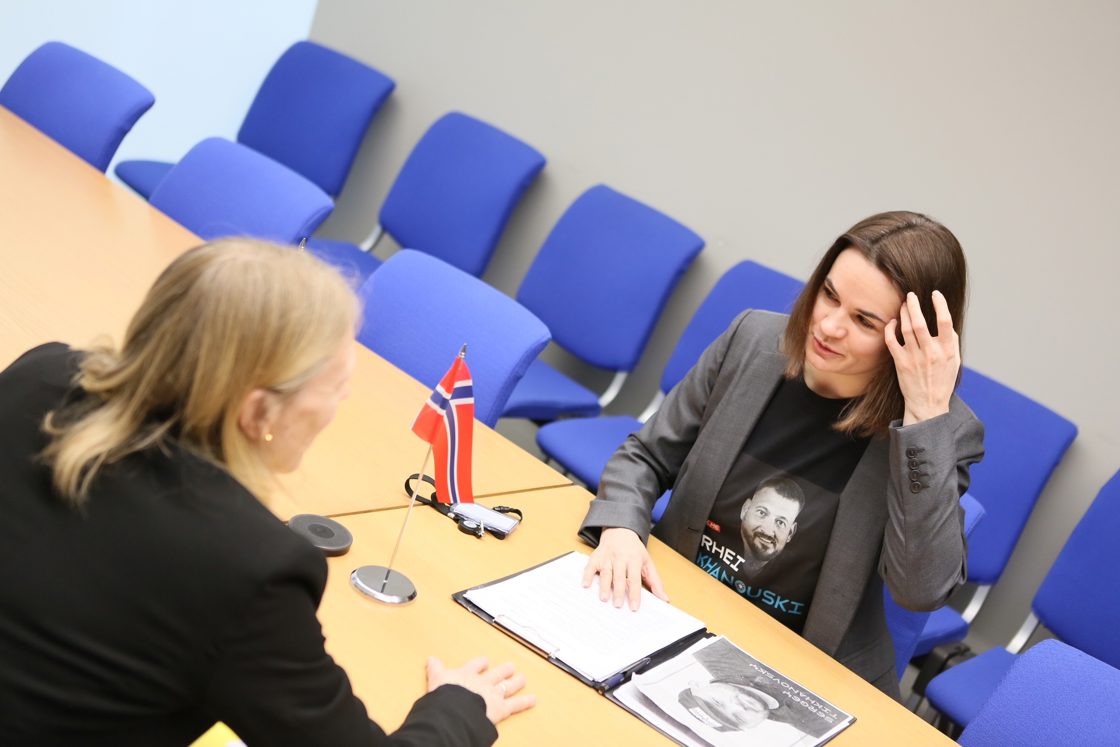 – Norge fordømmer Hviterusslands rolle i Russlands aggresjon mot Ukraina. Samtidig støtter vi det hviterussiske folkets kamp for frihet og demokrati, og Svetlana Tikhanovskajas modige arbeid for å nå dette målet, sier utenriksminister Anniken Huitfeldt.