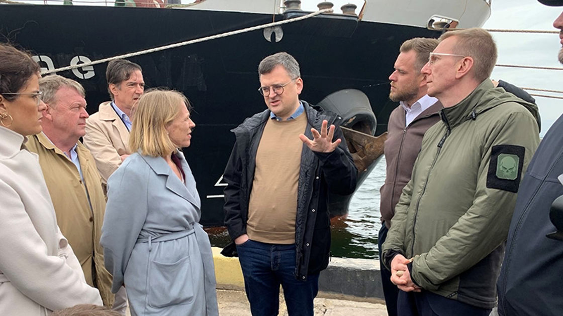De nordiske og baltiske utenriksministrene fikk også omvisning på havna. I 2020 gikk over 90 prosent av Ukrainas kommersielle havnetrafikk over Odesa og havner i umiddelbar nærhet. Den russiske sjøblokaden av ukrainske havner har til hensikt å undergrave økonomien og eksportkapasiteten til en av verdens største eksportører av landbruksprodukter. Avtalen om korneksport (Black Sea Grain Initiative) fra juli 2022 mellom Ukraina, Russland, Tyrkia og FN, hvor partene forplikter seg til å sikre trygg uttransportering av korn, matvarer og gjødselprodukter fra havnene i Odesa, Tsjornomorsk og Juzjne, ble 18. mars 2023 forlenget for andre gang.
