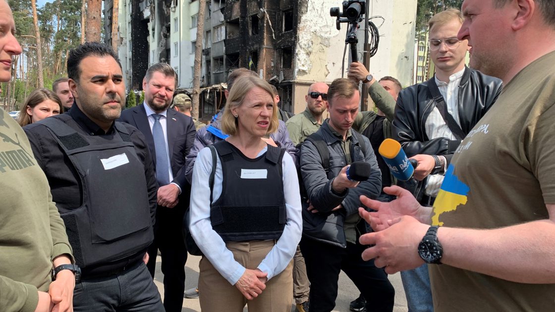 Utenriksministeren besøkte også Butsja og Irpin. Her kom hun tett på krigens ødeleggelser og møtte de som er direkte berørt.
