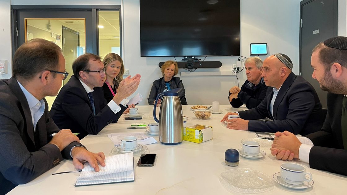 Under besøket til synagogen i dag møtte utenriksministeren lederen i Det Mosaiske Trossamfund (DMT) Ronen Bahar, nestleder Zhira Beck, rabbiner Michael Kohn og tidligere leder av DMT Rolf Kirschner.