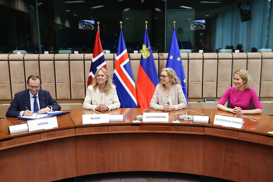 Også utenriksministrene fra Island og Liechtenstein undertegnet uttalelsen i dag, i forbindelse med det halvårlige møtet i EØS-rådet i Brussel. Europakommisjonen var representert ved kommissær for handel og økonomisk sikkerhet, Maroš Šefčovič, samt den polske viseministeren for økonomisk utvikling og teknologi Michał Baranowski som representerte Rådet for EUs formannskap.