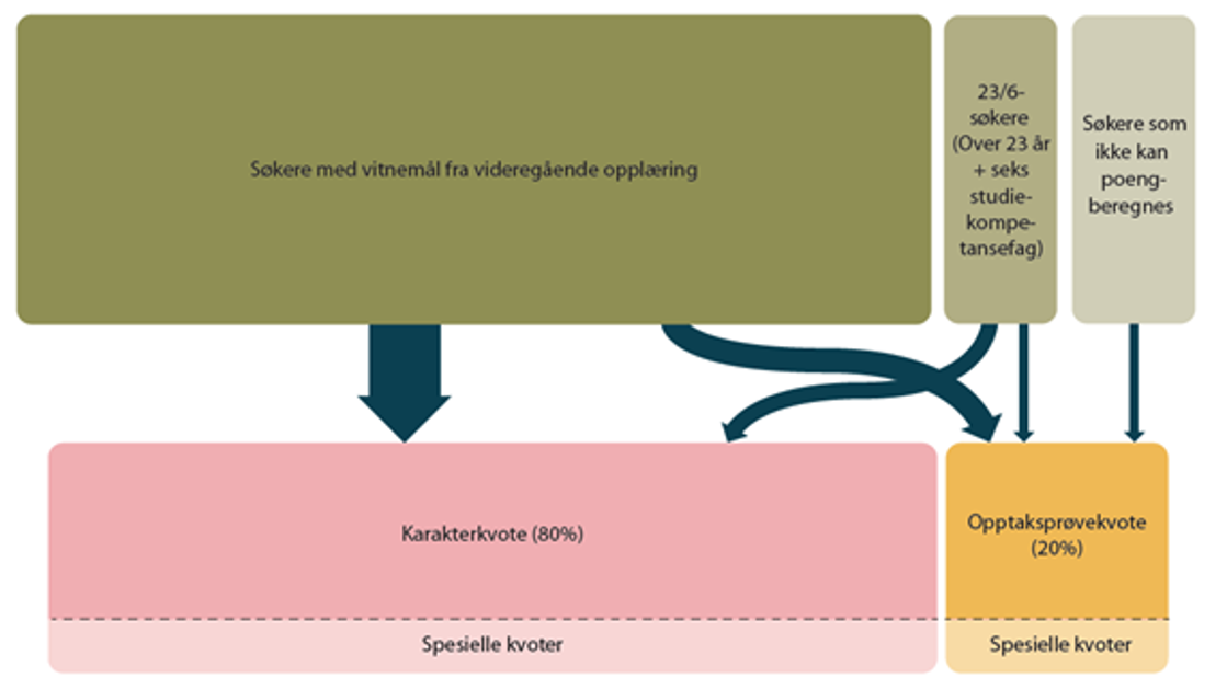 Søkere som ikke har gode nok karakterer skal få en ny sjanse. 20 prosent av plassene settes av til en opptaksprøvekvote, der søkerne kan ta en standardisert prøve. Dette er etter modell fra det svenske högskoleprovet. I dag er det søkere som ikke har karakterer fra videregående, men som oppnår studiekompetanse via andre ordninger, som realkompetanse. Disse søkerne vil kunne ta opptaksprøven for å kunne konkurrere seg inn på studier med flere søkere enn plasser.