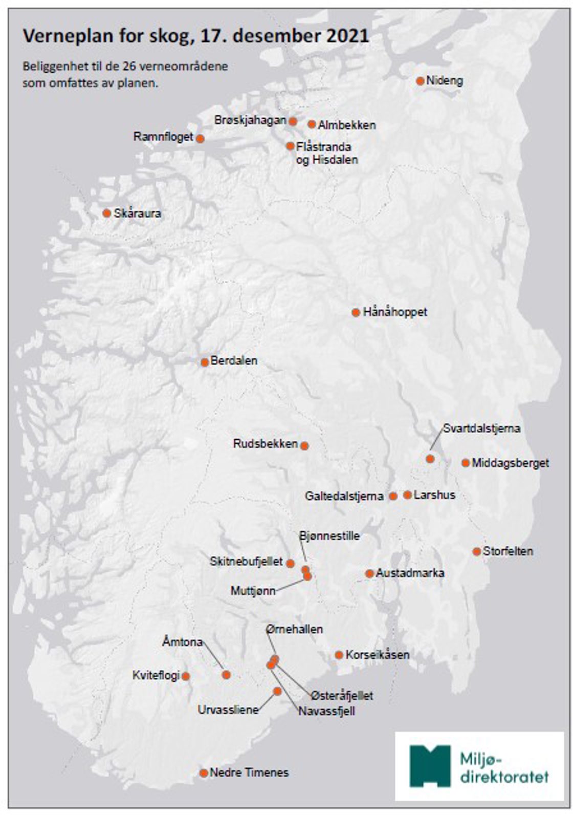 – Skogen spiller en avgjørende rolle for naturmangfoldet i Norge. Den er et viktig karbonlager, og en avgjørende klimapartner for å nå våre klimamål. Skogen er hjemmet til mye sårbar natur, som vi er helt avhengige av, og som vi må ta godt vare på. Regjeringen er opptatt av at skogvernet skal være treffsikkert, slik at vi fanger opp og beskytter truede arter, sier klima- og miljøminister Espen Barth Eide.