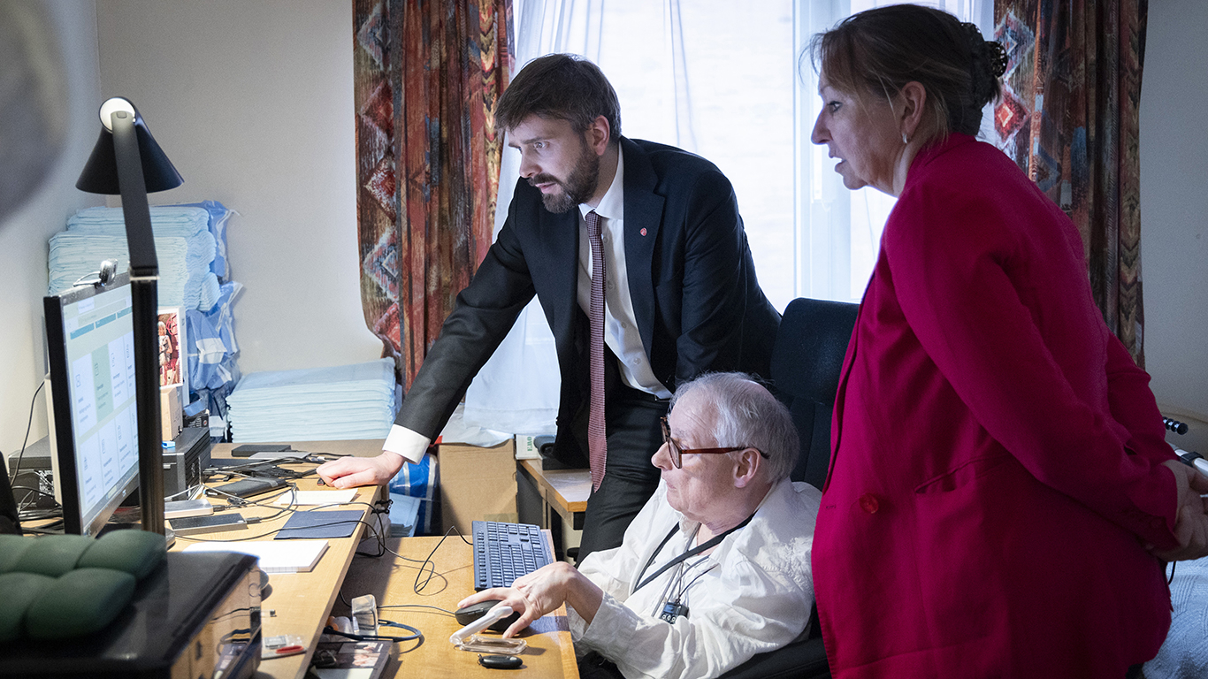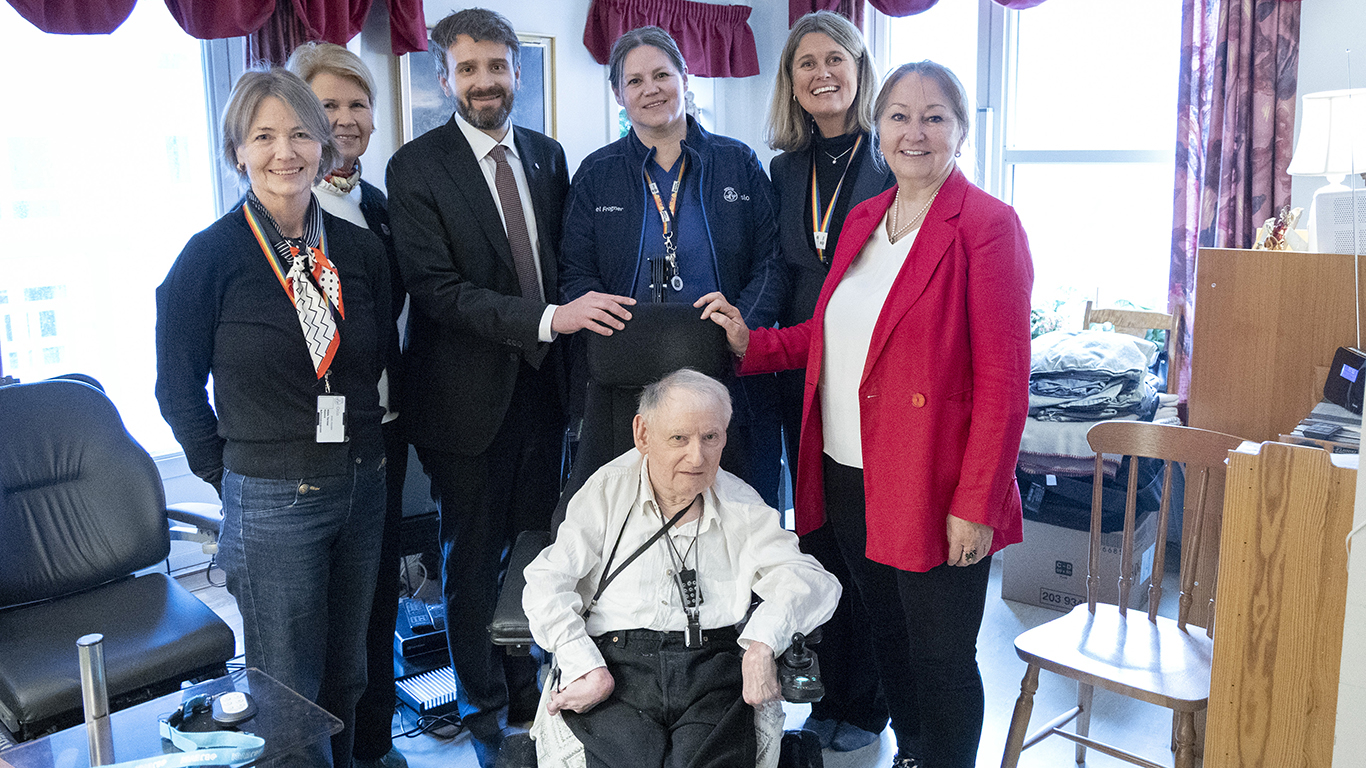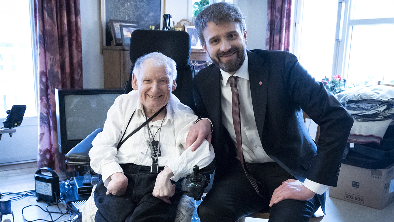 Nyleg besøkte helse- og omsorgsministeren den 68 år gamle rullestolbrukaren Jostein Hoelsæter i Oslo. Han får besøk av heimesjukepleiar to gonger om dagen, og har også brukarstyrt personleg assistent.