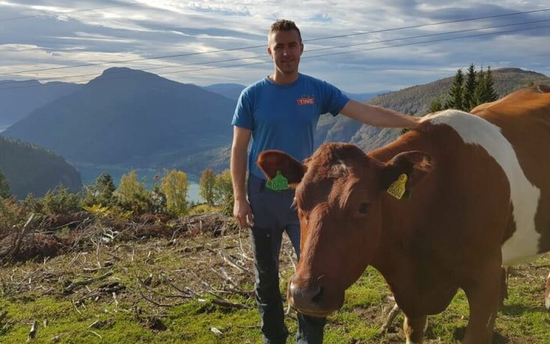 Hermund Prestegård (29) har siden 2015 vært fulltidsbonde på familiegården på Gaupne i Luster kommune. Han begynte på voksenagronomen ved Mo og Øyrane vgs fordi han ville lære mer om landbruk og gårdsdrift.