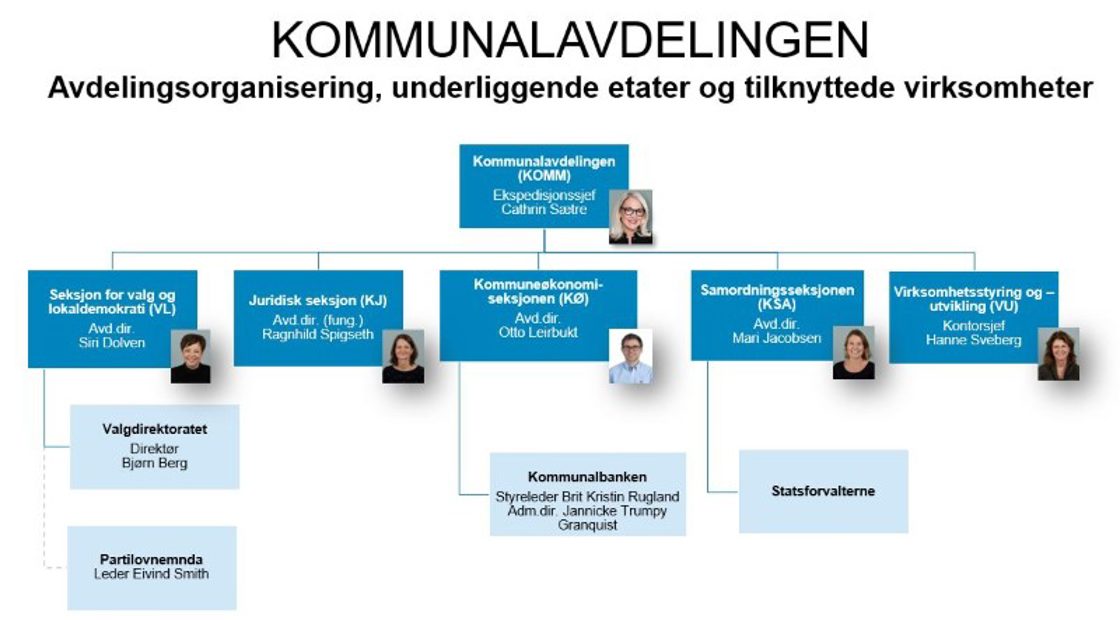 Kommunalavdelingen har ansvaret for å følge opp regjeringens politikk overfor kommunene.