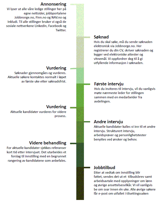 Her ser du en oversikt over hvordan tilsettingsprosessen foregår i praksis: