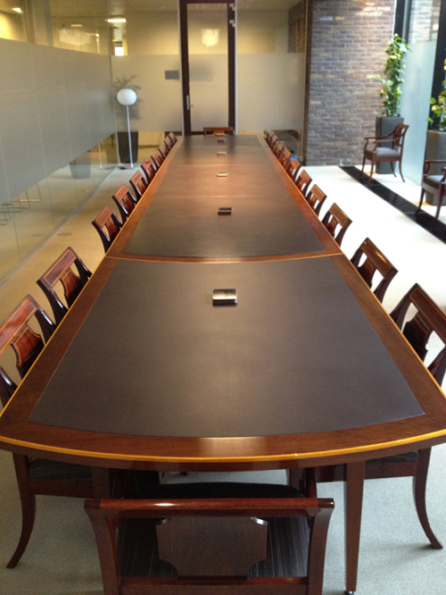 På samme måte som stolene ble trukket om mellom 1923 og 1958/1959, og kan hende også var blitt det før 1923, fikk både bordet, stolene og sofaene en ansiktsløftning ved flyttingen av møterom 1 fra 15. til 16. etasje i 1990. De siste årene før dette var bordet kledd med grønt skinn mens stolene hadde svarte hestehårsputer. I 2010-2011 fikk møblementet nok en ansiktsløftning, samtidig som antallet stoler ble økt til 25 og møtebordet ble forlenget.