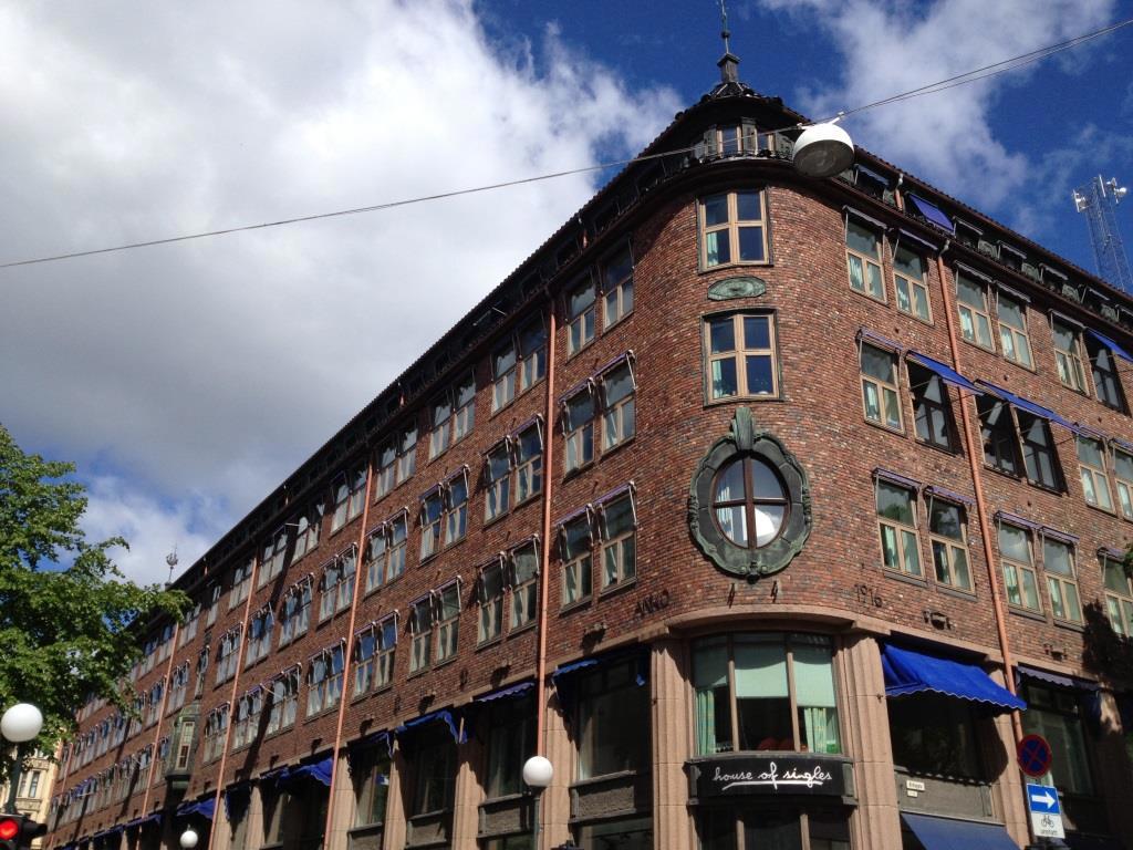 Til venstre Stiftsgården i Rådhusgaten 13 i Kristiania i 1870-årene, et snaut tiår før Christian Krohg besøkte statsminister Johan Sverdrup der. (Foto: S.B. Mejdell/Oslo Museum). Til høyre Sjøfartbygningen, oppført 1913-1915 der Stiftsgården lå. (Foto 2013: Øivind Østang/Statsministerens kontor).