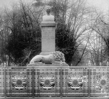 Til venstre monumentet som kong Carl XIV Johan i 1844 lot reise for å hedre avdøde stattholder Herman Wedel Jarlsberg, på Dronningberget på Bygdøy, fotografert i 1901. I midten det restaurerte monumentet i 2007. Til høyre Sæterhytten i 2011. (Alle foto: Norsk Folkemuseum).