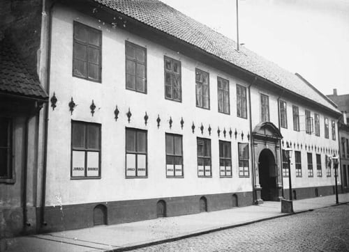 1906. Firma Chr. Mathiessen (senere Banan-Mathiessen og BAMA) begynte i 1905 - som det første i Europa utenom Storbritannia - å importere bananer, og tok i bruk den tidligere regjeringsbygningen i Rådhusgaten 13 som bananmodneri. I vinduene reklameres det for Jamaica Bananer.