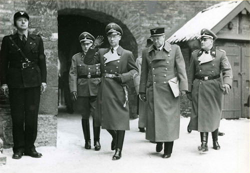Rikskommissær Josef Terboven og Vidkun Quisling kommer inn i borggården på Akershus slott 1. februar 1942, til Quislings innsettelse som ministerpresident i Norges "nasjonale regjering". Seremonien foregikk i den senere Olavshallen - salen over Margaretasalen i nordfløyen. (Foto: Riksarkivet).