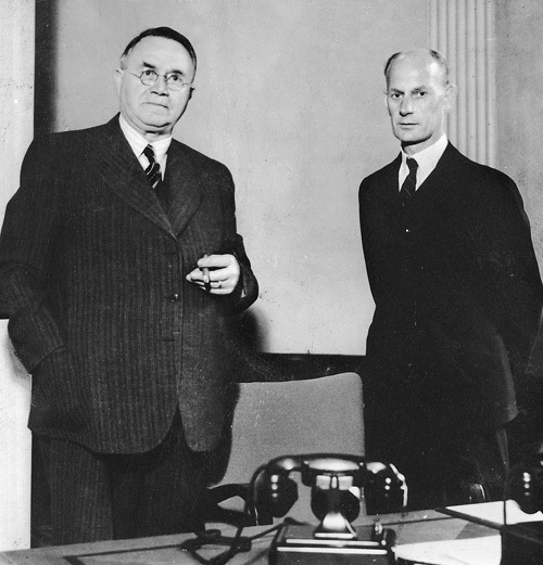 Statsrådsekretærene Bredo Rolsted (til venstre, foto 1933: Oslo Museum) og Leif M. Østern (foto 1955: Aftenposten/NTBScanpix).