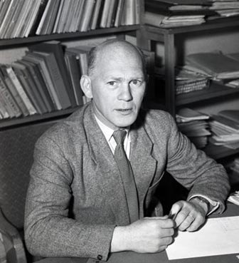 Statsministerens kontors tre første ekspedisjonssjefer fra 1956. Fra venstre Kristian Bloch 1956-1964, Arnfinn Guldvog 1956-1983 og Andreas Andersen 1956-1973. (Foto: Arbark og NTBScanpix (Andersen)).