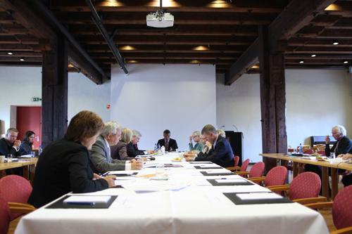 Stoltenberg leder regjeringskonferanse på Artilleriloftet på Akershus festning 22. september 2011. (Foto: Statsministerens kontor).