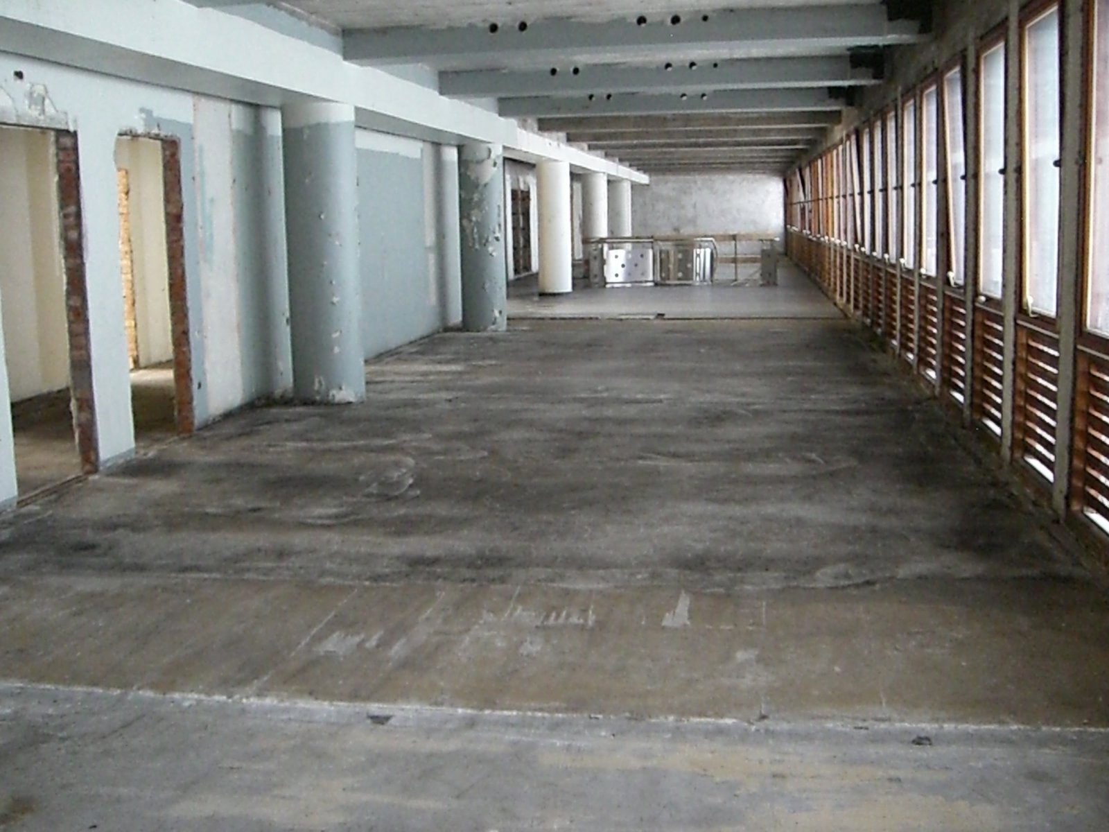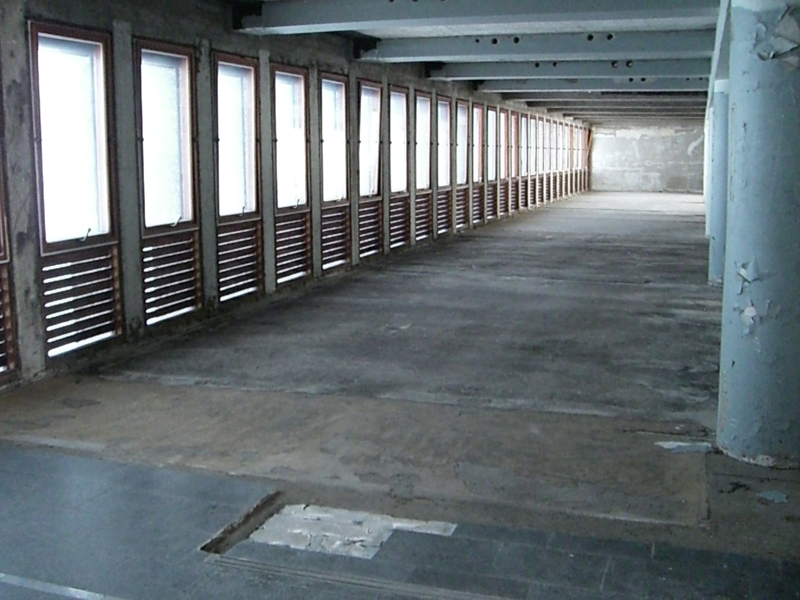 Sett fra sør viser det lysere feltet i gulvet hitenfor nærmeste søyle, det arealet statsministerkontoret ble utvidet med i 1970 - ett